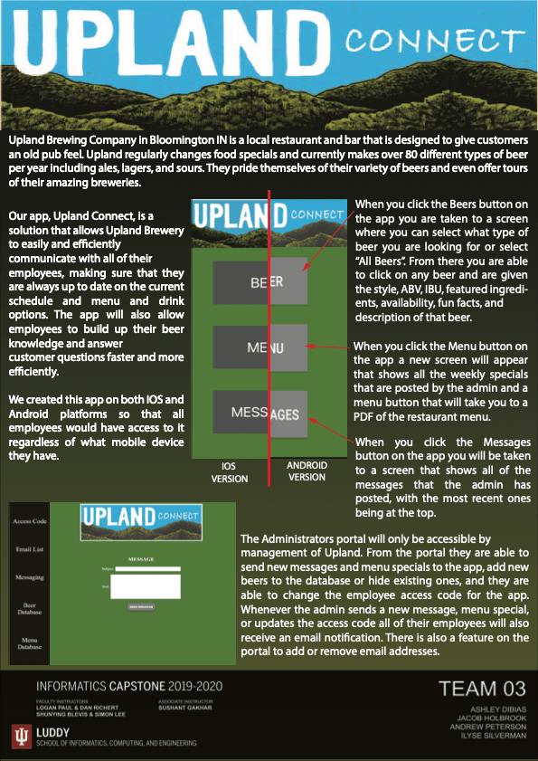My team and I, consisting of four members, developed an Admin Portal and a mobile app (both iOS and Android) for a local brewery in our college town. The project aimed to streamline the brewery’s operations by providing an easy-to-use platform for managing staff schedules, inventory, and customer engagement. Unfortunately, by the end of the project, the Covid-19 pandemic had taken effect, leading the business to lay off many employees, which meant they no longer had a need for our solution.